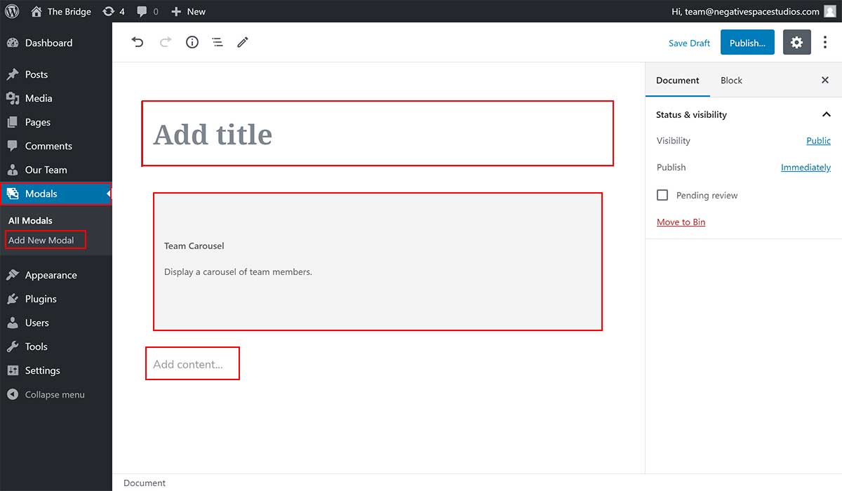 - Enter the modal title in the "Add title" field (highlighted below)
