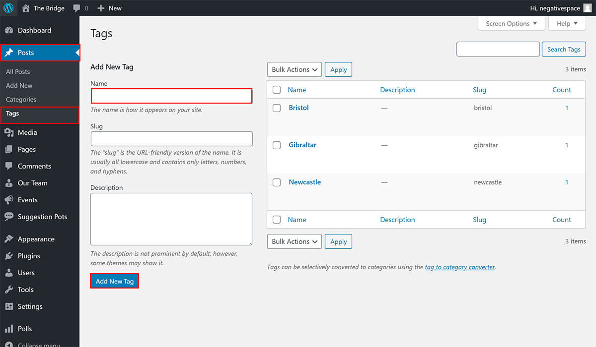 - Click on Add New Tag