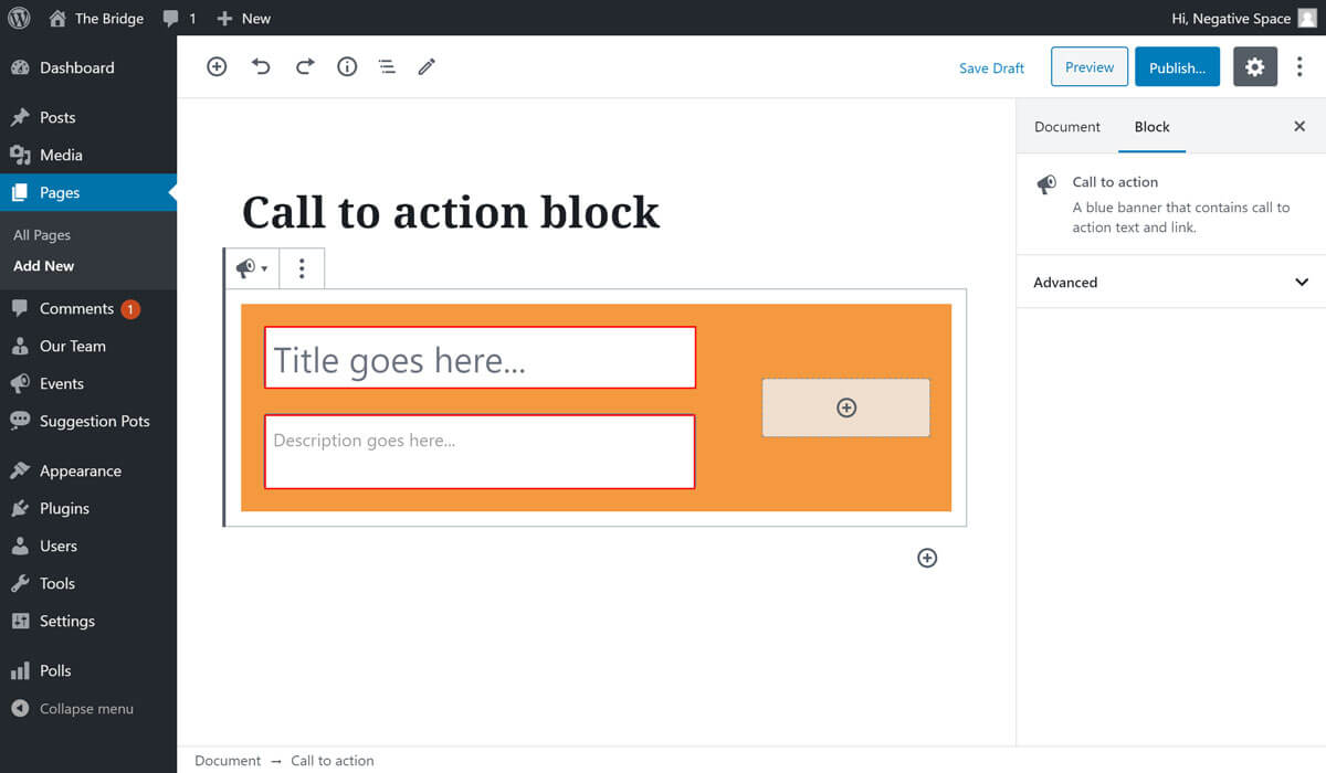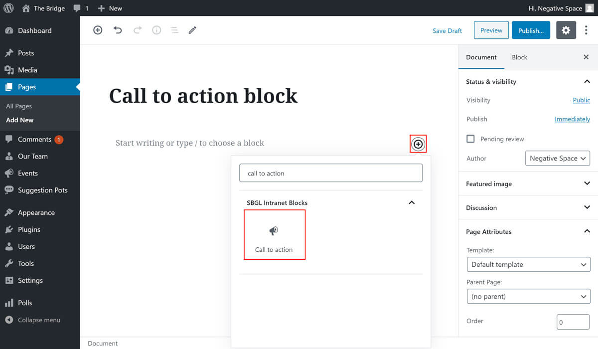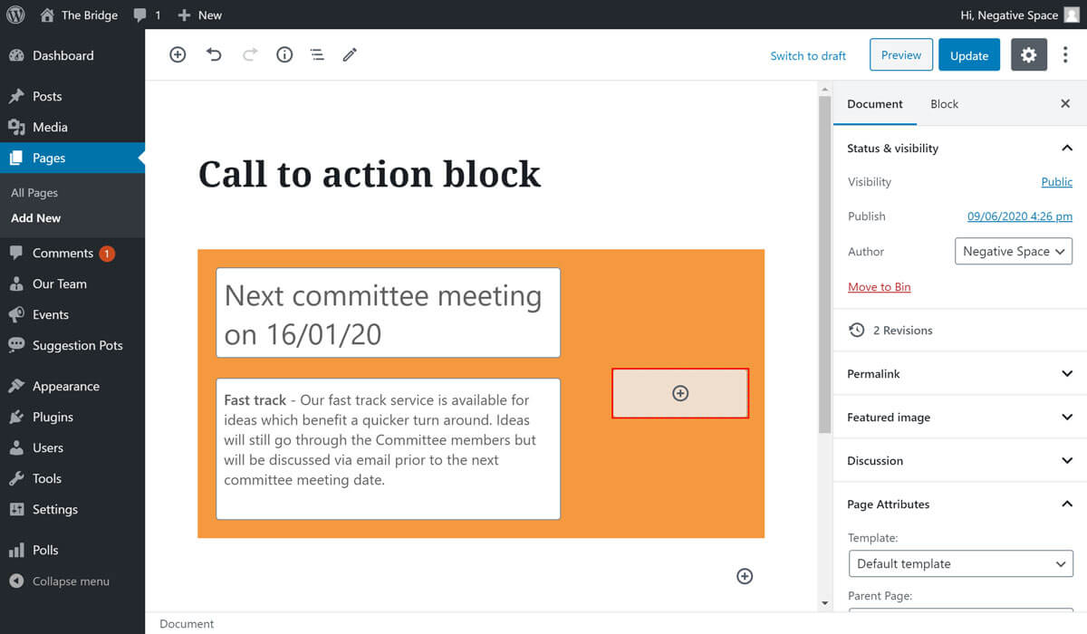 - Add or edit a page that uses the Gutenberg editor (e.g. Page or Post)