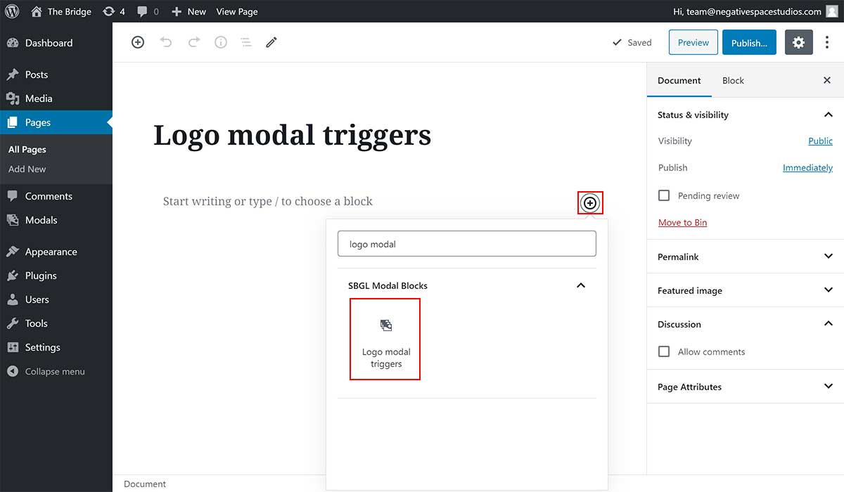 1. Add or edit a page that uses the Gutenberg editor (e.g. Page or Post)