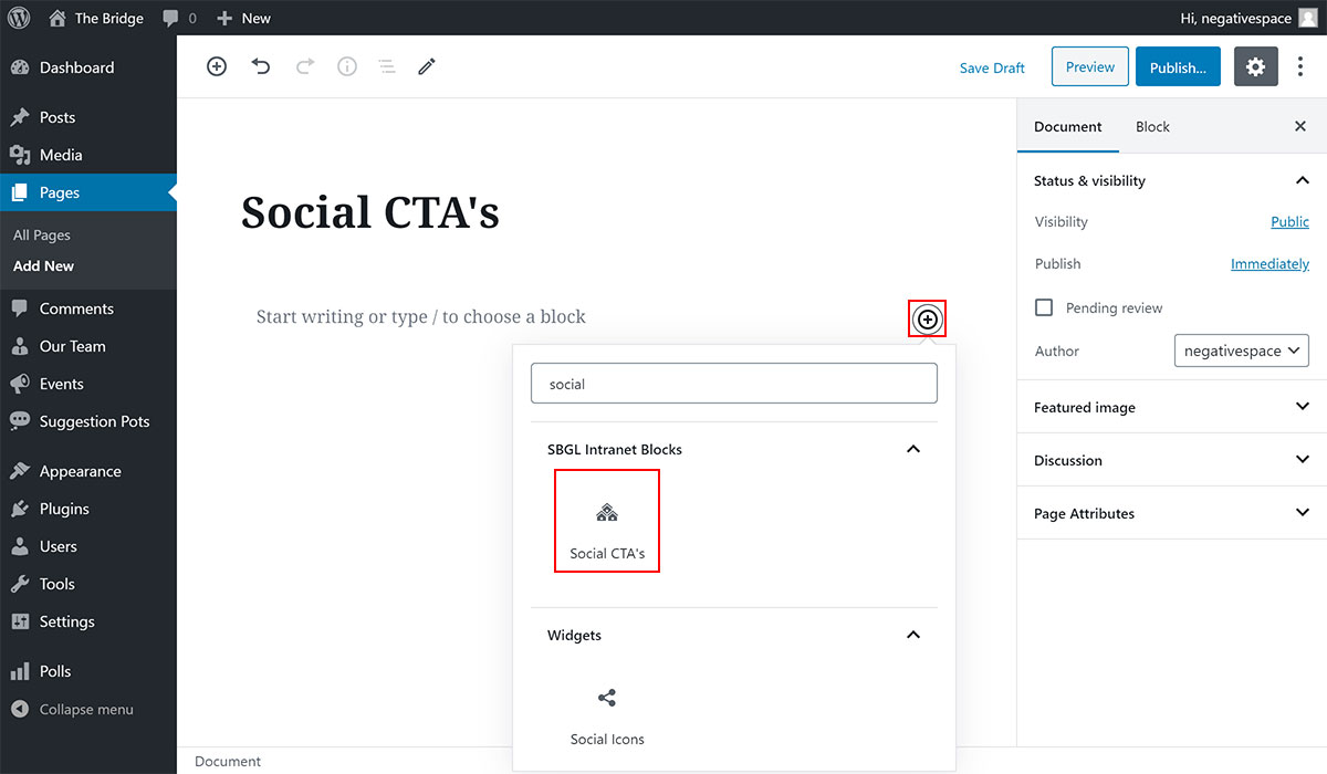 - Add or edit a page that uses the Gutenberg editor (e.g. Page or Post)