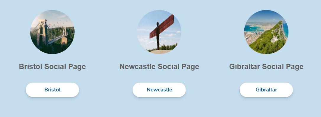 This block groups Social CTA blocks that consist of an image, a heading and a button and it's used to generate the following design: